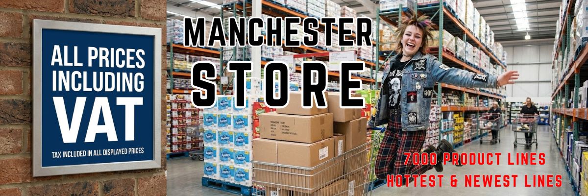 Welcome to Manchester Store, your local wholesaler that is reputable and has a good track record. Offering over 7000 products all available in the UK & good prices. We are easy to work with, stock all products on our website in the UK, available for NEXT DAY DELIVERY.